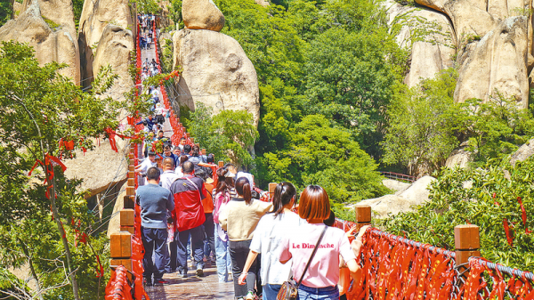 我市推出了“西游文化游”“汉服体验游”“民俗文化游”“乡村休闲游”“轻奢户外露营”等不同主题的文旅活动,让每位游客乘兴而来,满意而归。嵖岈山景区西游表演、实景演绎五一期间轮番上演,演员与游客互动,其乐融融;老乐山景区“穿汉服、免门票”汉服文化节活动,国风气息和文化元素吸引了众多游客前来游玩;皇家驿站明制水上婚礼秀、民俗表演、游船演绎、汉服体验火热出圈,五一期间,共接待游客30多万人次;铜山、铜山湖景区举办的登山比赛,吸引了众多省内外选手、游客报名参赛,在欣赏美景中强健体魄。
